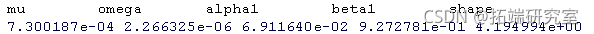 这个包所做的唯一模型是具有t分布误差的garch(1,1)。