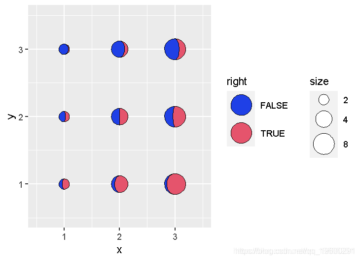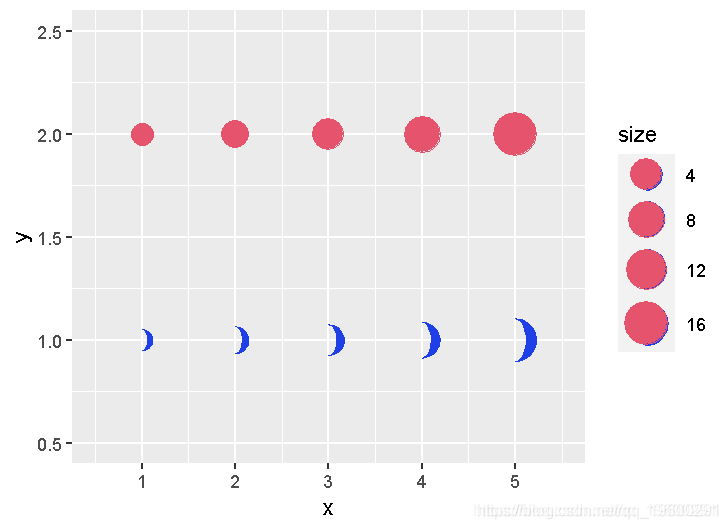 ggplot2数据可视化包,为R语言中的月亮图提供支持。它们的绘制方式与ggplot2中的点最为相似:它们的位置由一个x和一个y坐标定义,它们的大小与坐标系无关,所以它们总是保持圆形。