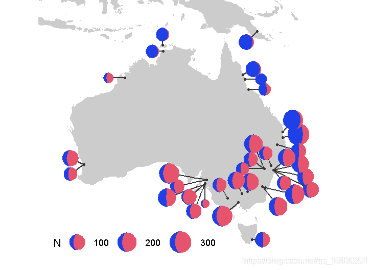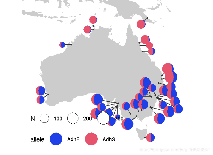 饼图地图在人口遗传学中很流行,所以让我们看一下该领域的一个例子。