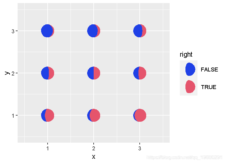 用两种颜色制作一个 “完整 “的月亮的一种方法是用right = TRUE表示一种颜色,用right = FALSE表示另一种颜色,比例互补。