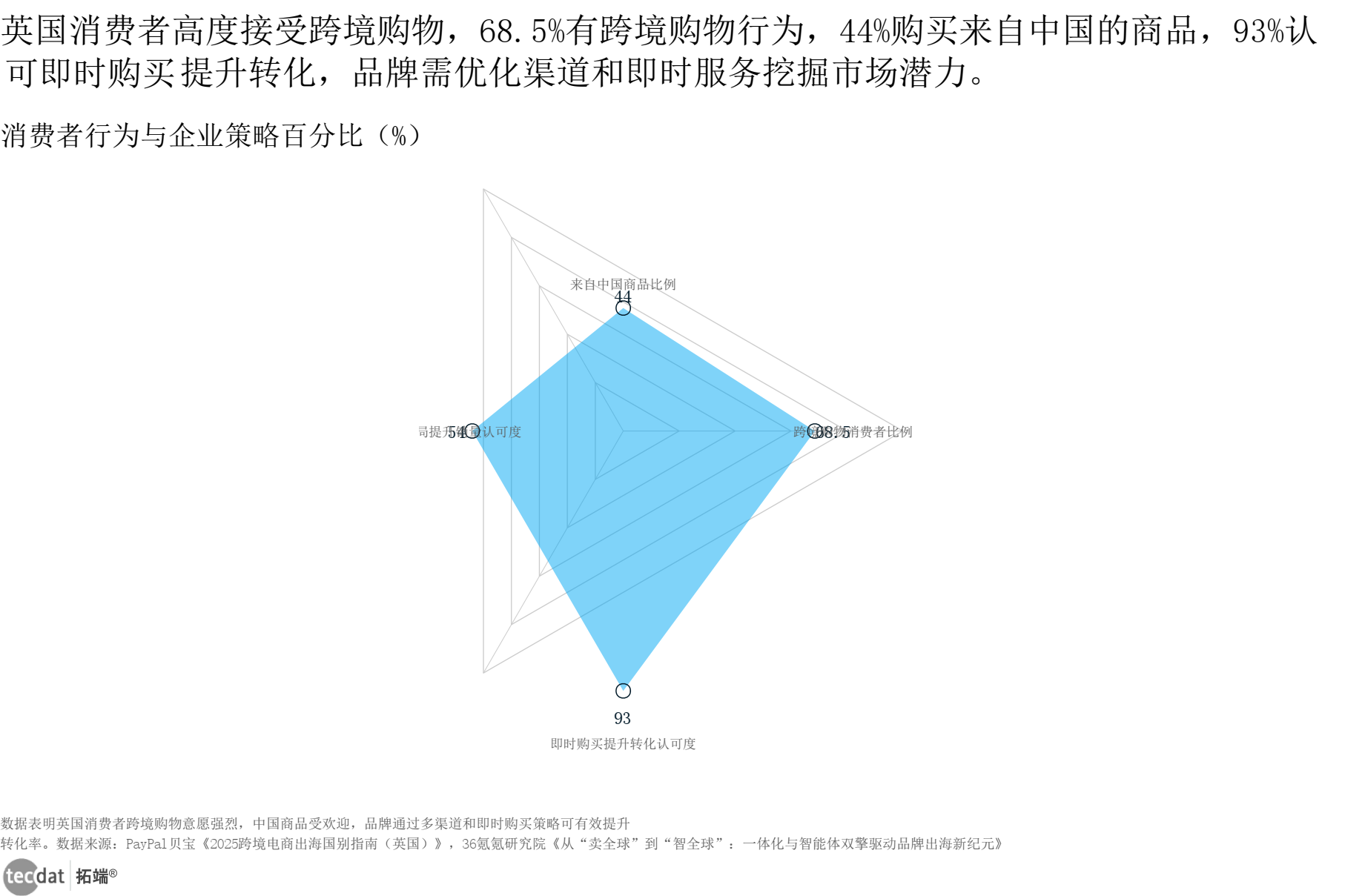 3秒解读:英国消费者“跨境购物意愿强烈”,性价比、物流时效、社交媒体引流是“关键影响因素”,移动端购物占比超60%。