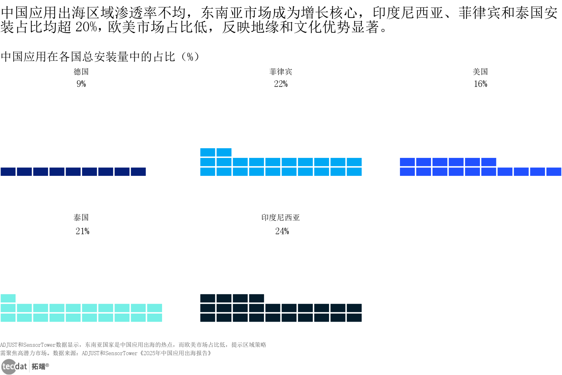 应用出海区域分布华夫图表5数据及PDF模板已分享到会员群