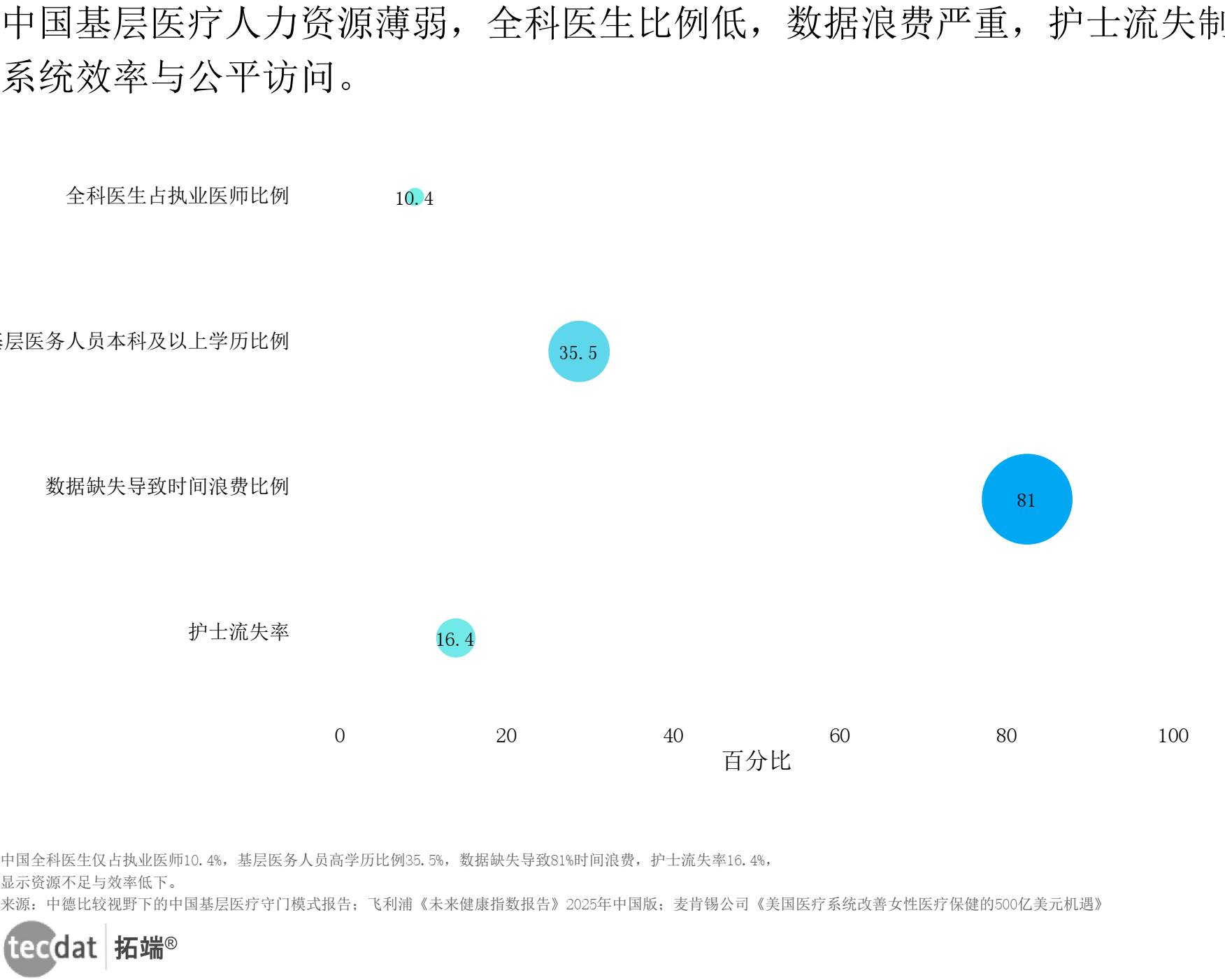 中国基层医疗系统效率相关指标刻度气泡图4图表数据及PDF模板已分享到会员群