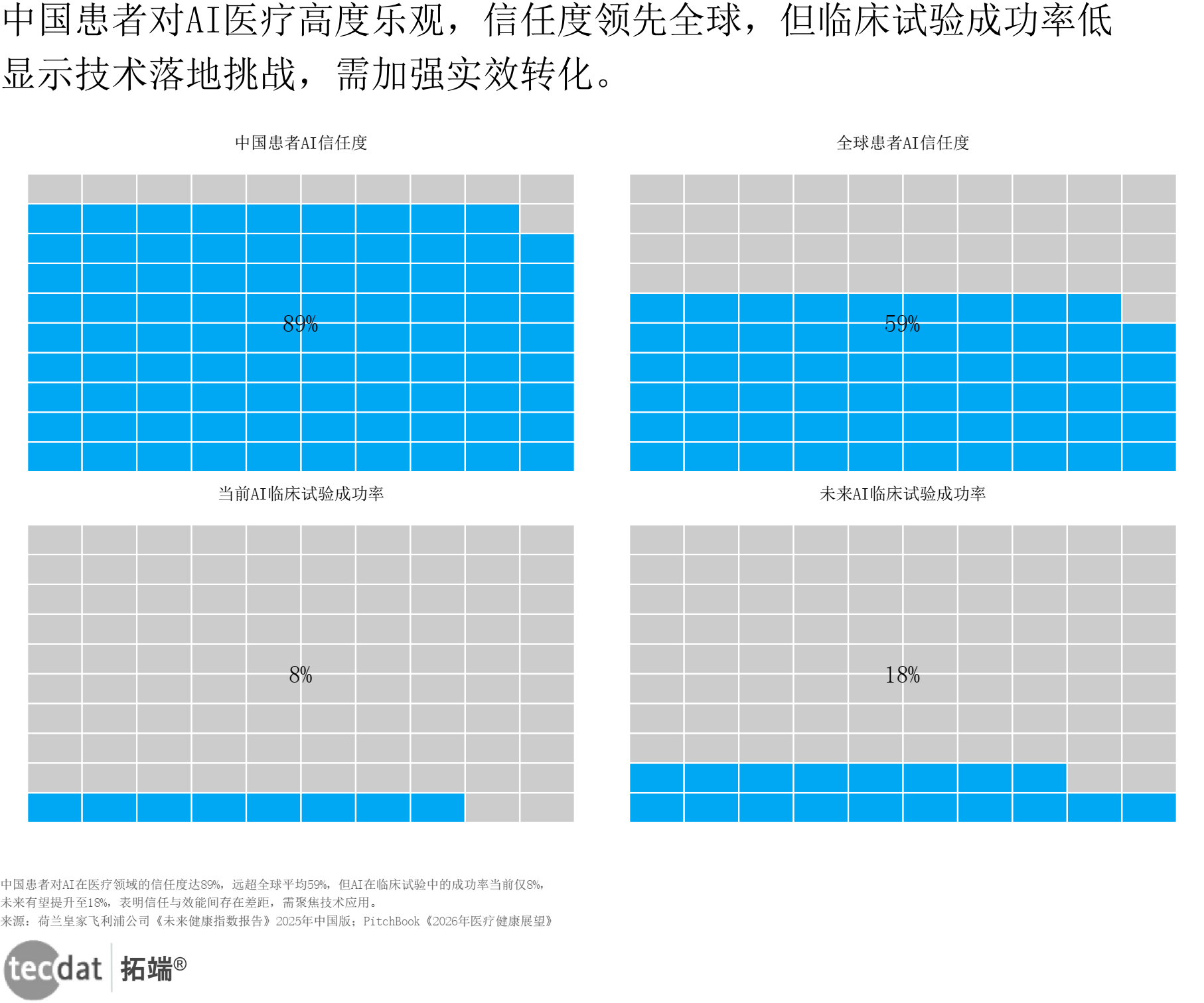 - 中国患者AI信任度与临床试验成功率对比华夫图1