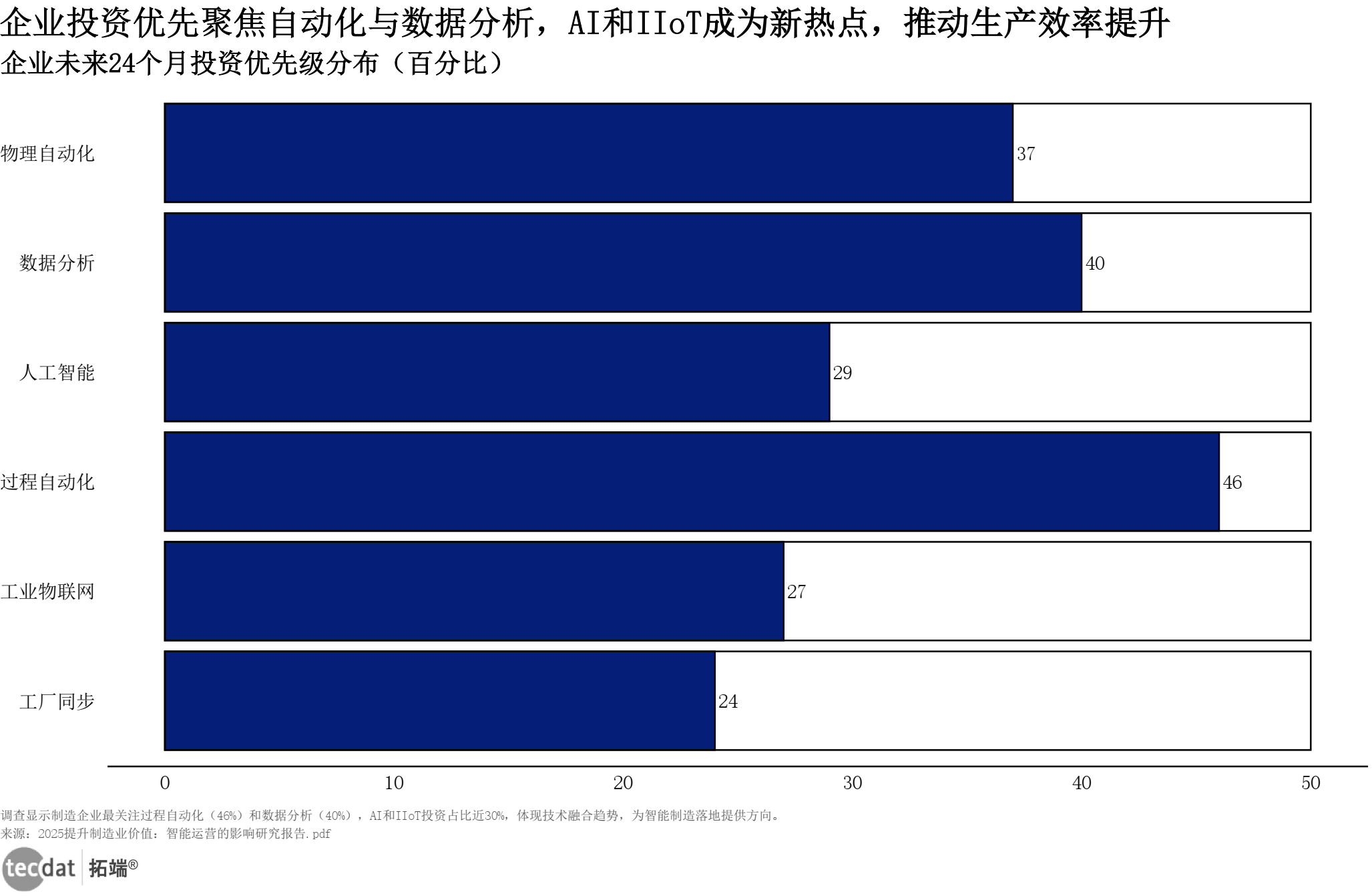 为什么犹豫?《2025提升制造业价值:智能运营的影响研究报告.pdf》里提到,很多企业怕“投入打水漂”——不知道该先上自动化设备,还是先做数据中台。其实答案藏在企业的投资优先级里: