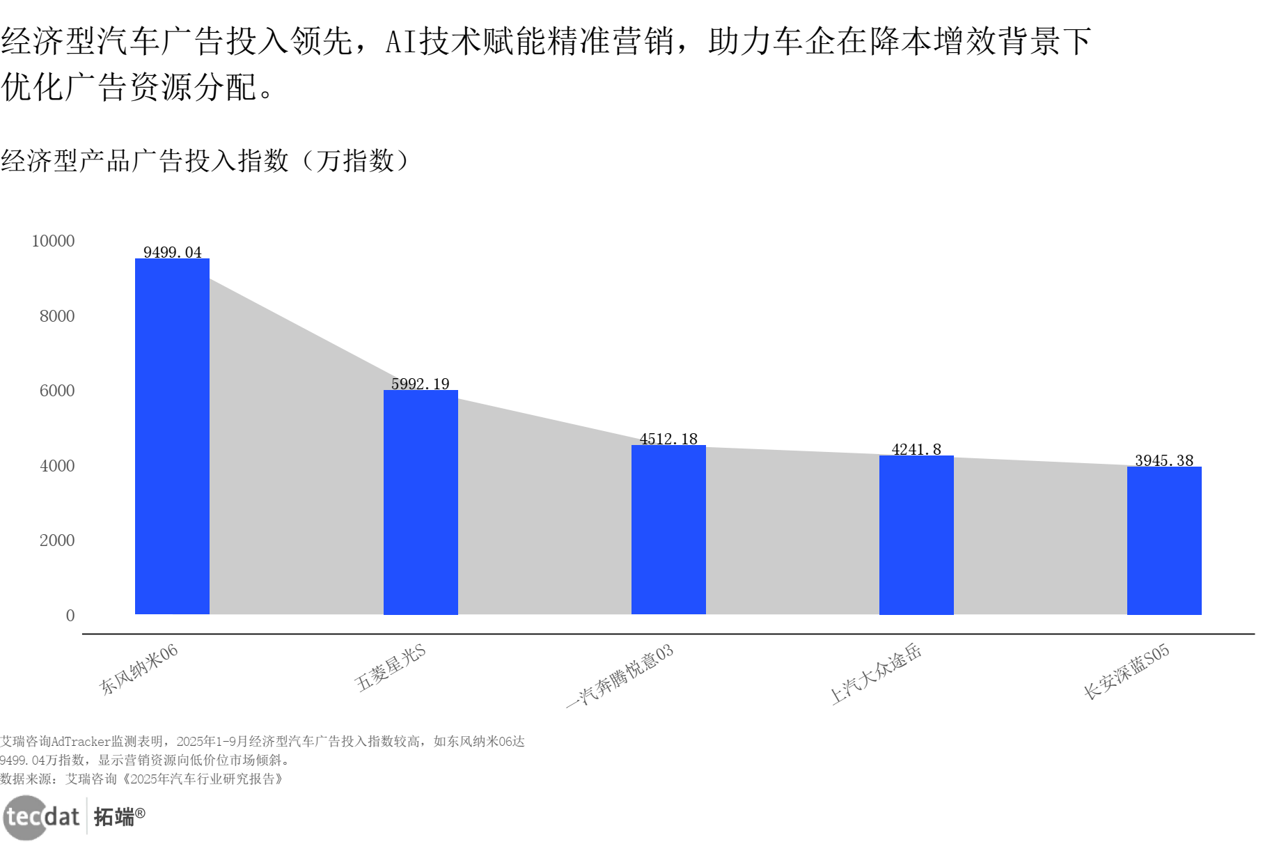 汽车行业广告投入虽同比下降25.4%(2025年1-9月累计31.4亿),但“钱要花在刀刃上”——营销资源加速向移动端集中,百度凭借11亿+移动互联网用户,成为车企的核心投放平台,其PC端、移动端汽车广告主数量均位列前三,AI营销工具(如精准人群定向)可帮车企降低30%的获客成本。