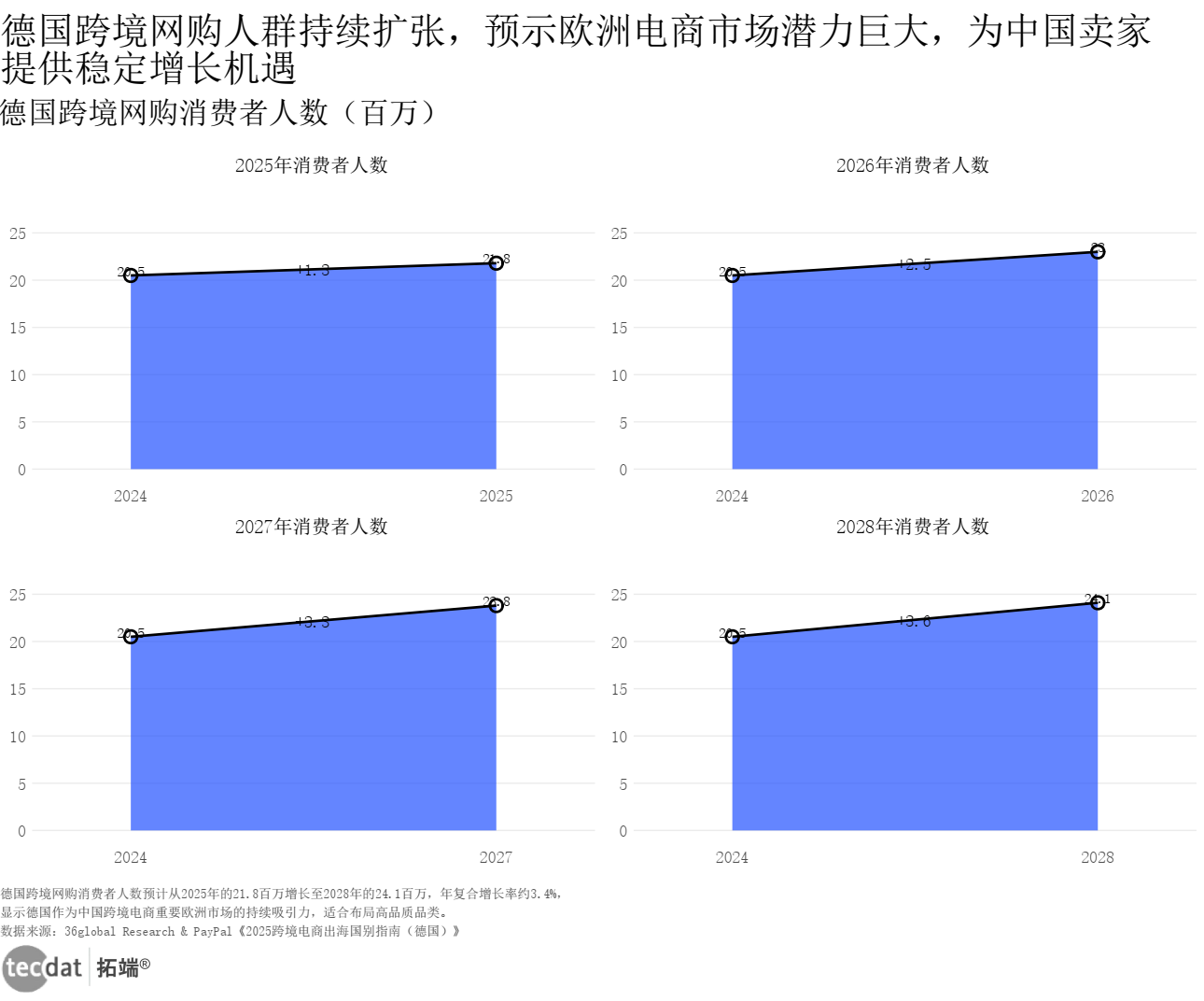 2025-2028年,德国跨境网购消费者将从21.8百万增至24.1百万,年复合增长率3.4%,这个增长不是“泛泛的增量”,而是集中在“品质化、场景化”需求——比如冬季保暖类产品,消费者愿为“环保材质+经典设计”多付20%溢价。