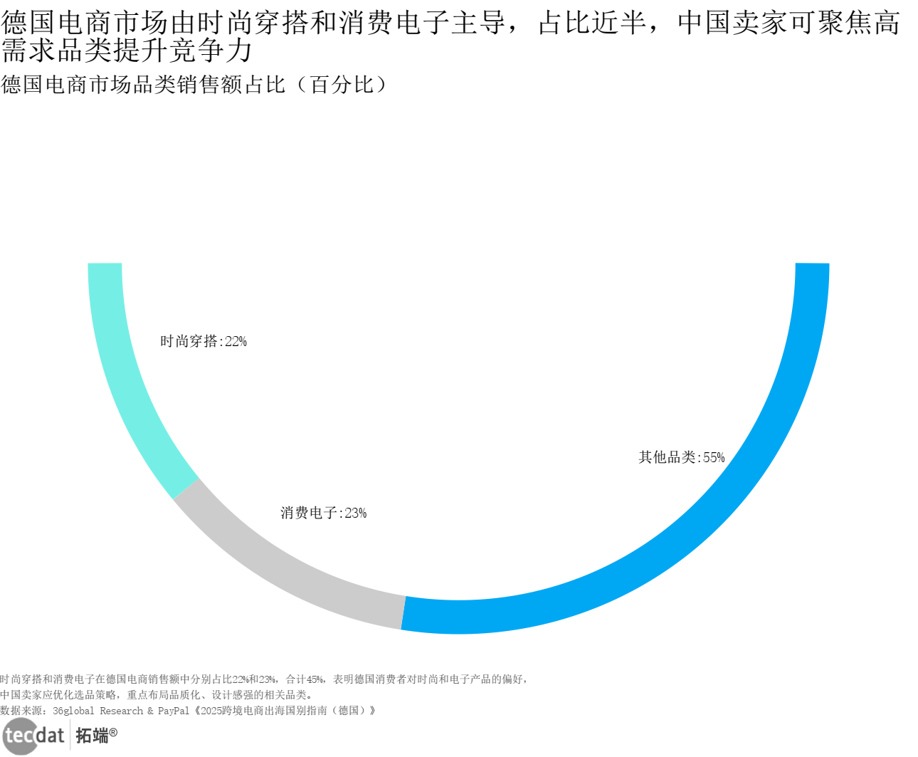 德国电商市场品类销售额占比半圆面积比例图表8数据及PDF模板已分享到会员群
