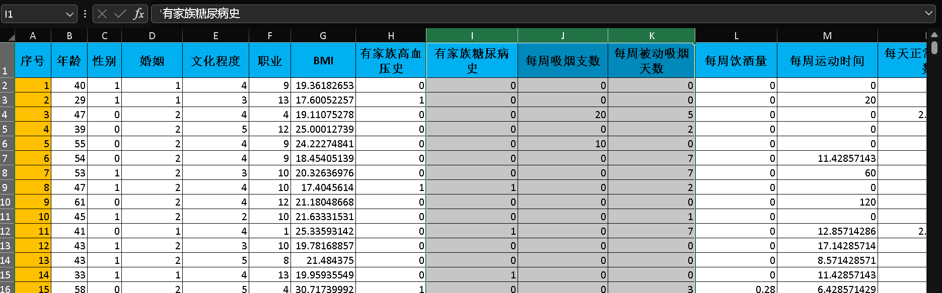 数据来源与预处理:本研究数据来源于某地区居民健康调查数据库,共纳入7768名18岁以上居民,涵盖人口学特征、生活方式、饮食习惯和疾病家族史4大类27个变量。数据分析在Python 3.8环境中完成,依托pandas、numpy和scikit-learn工具库实现。