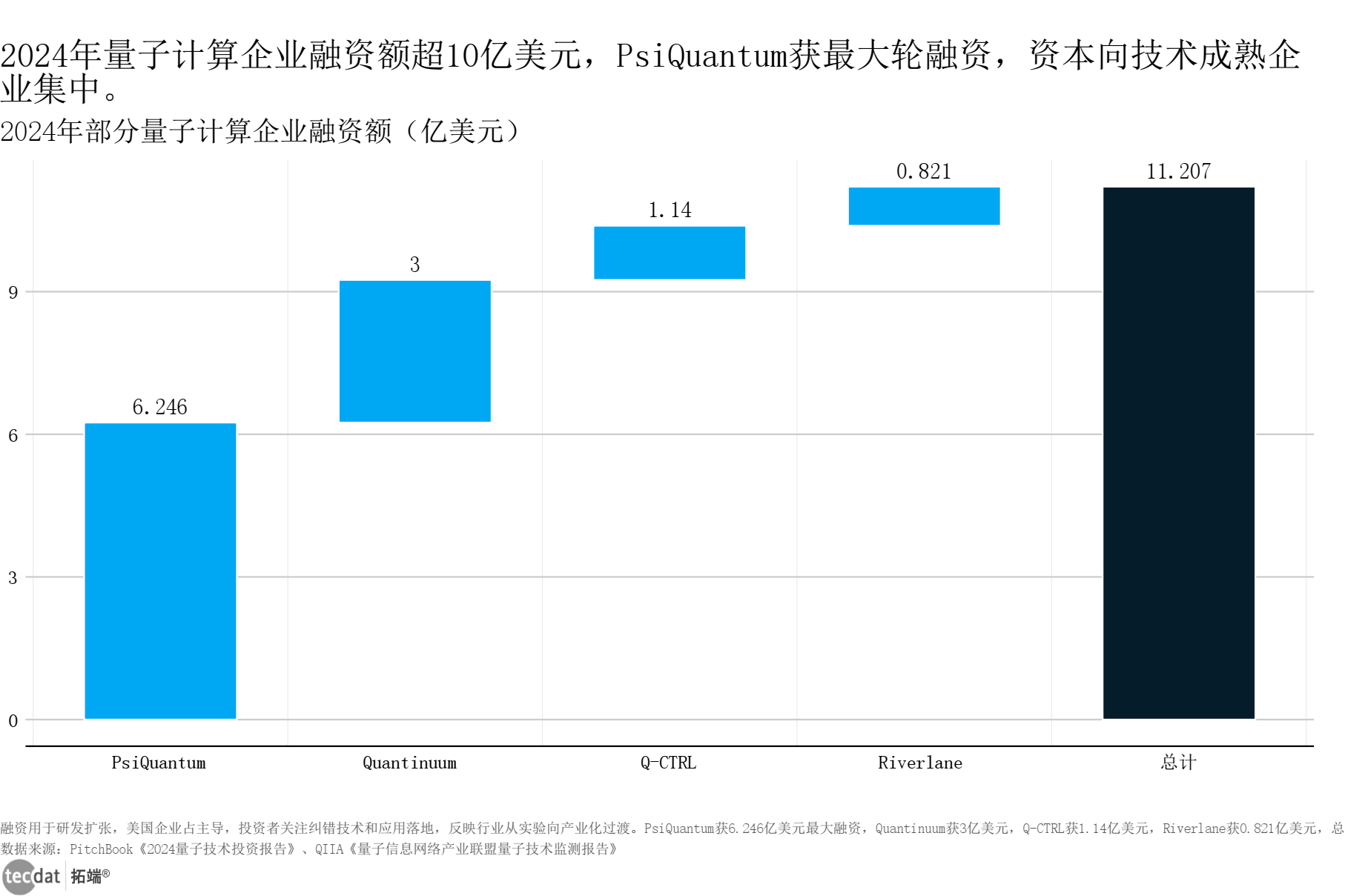 3秒解读:2024年全球融资20.15亿美元,美国企业占比62.7%,PsiQuantum以6.246亿美元获最大轮融资,Quantinuum、Q-CTRL紧随其后;中国最大单笔融资仅0.1亿美元,且集中在硬件领域,软件企业融资困难。