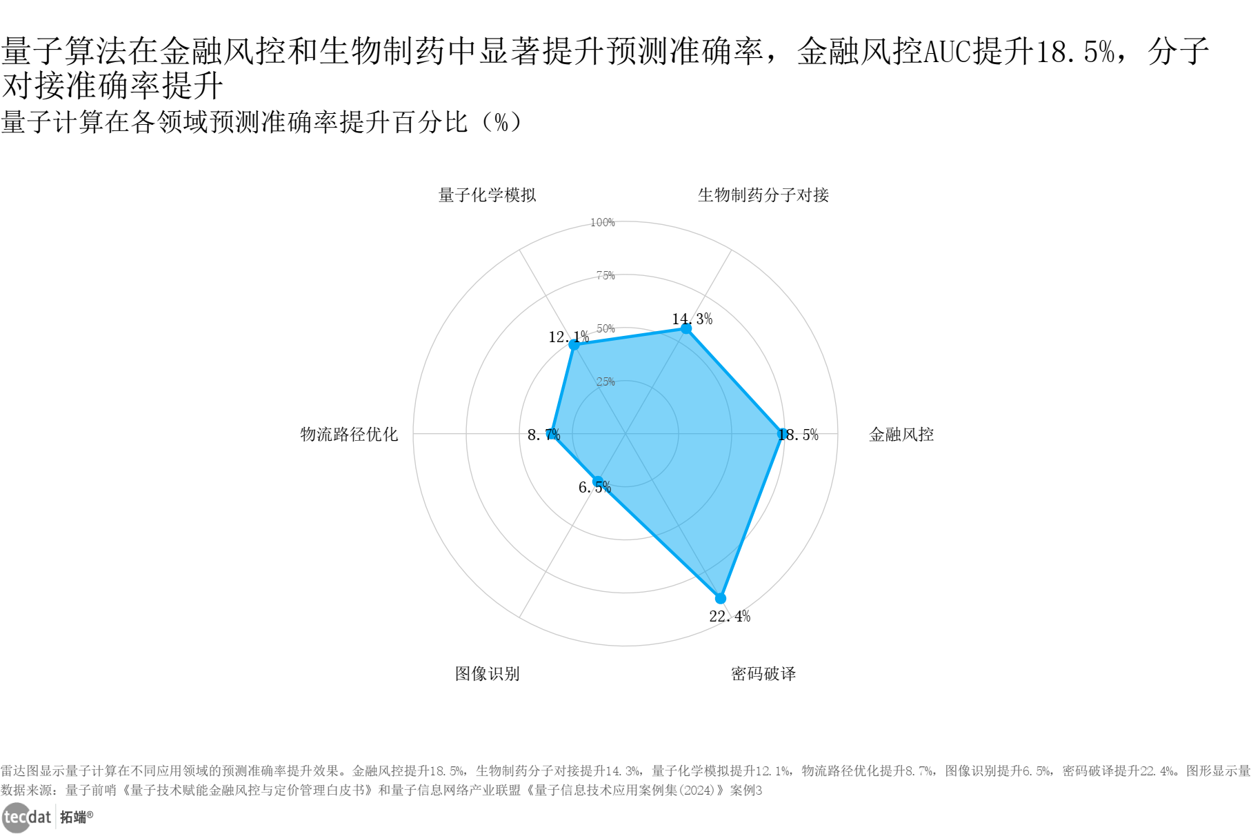 注释:数据来源为量子前哨《量子技术赋能金融风控与定价管理白皮书》,测试场景包含金融风控、生物制药分子对接等核心应用领域。