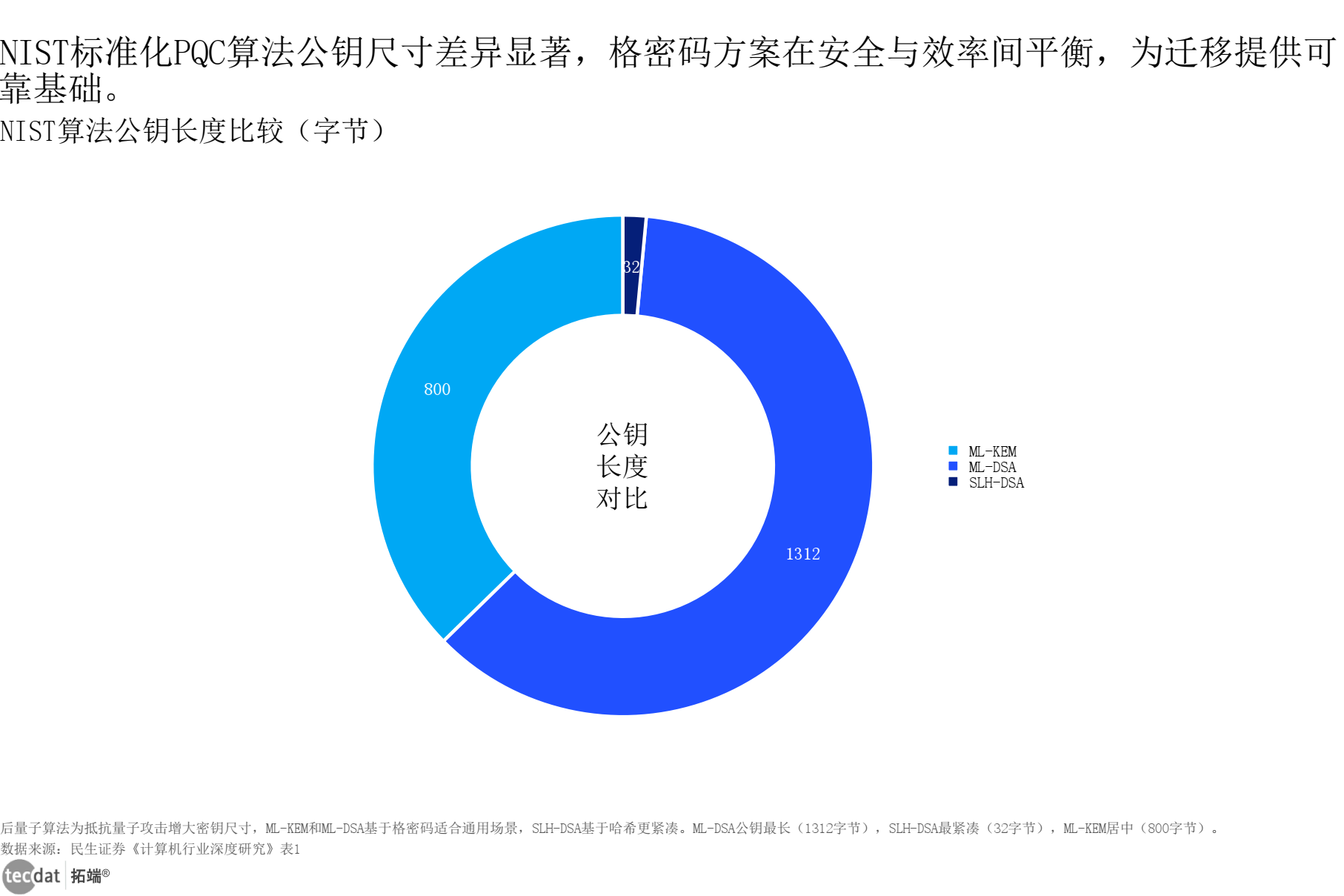不同PQC算法公钥长度差异显著,影响设备适配性与传输效率,中国在算法适配与设备兼容上仍落后。