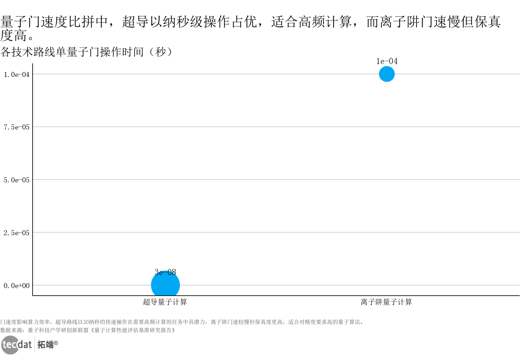探索观点4. 量子门操作时间对比 计算效率的核心保障,中国超导路线具备局部优势。操作时间决定量子门执行速度,影响整体计算效率,中国在超导路线的门操作速度上实现局部反超,但应用场景有限。