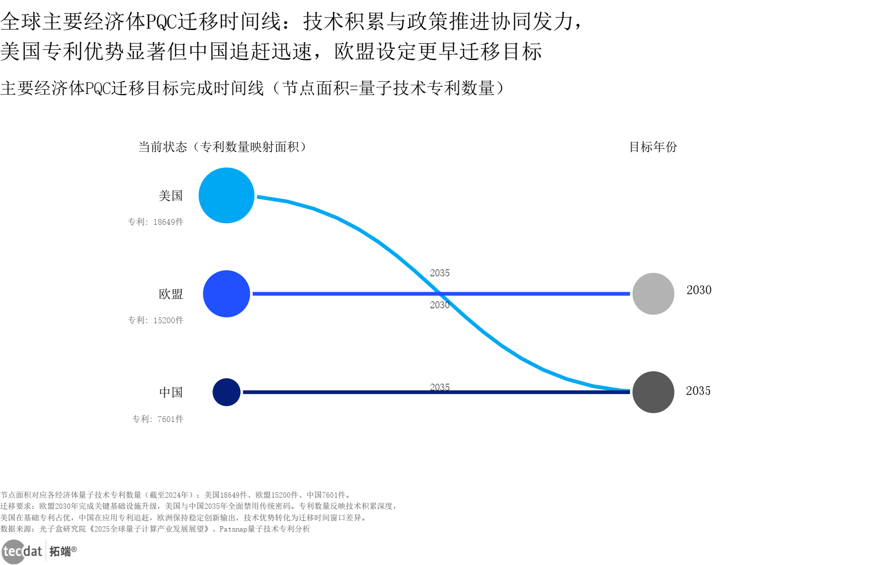各国明确PQC迁移时间表,形成全球协同防控量子安全风险的格局,中国迁移目标虽与美国一致,但执行力度需加强。