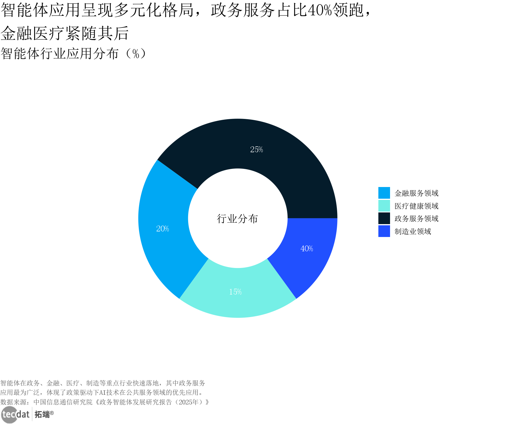 智能体应用呈现多元化格局,政务服务占比40%领跑,金融医疗紧随其后