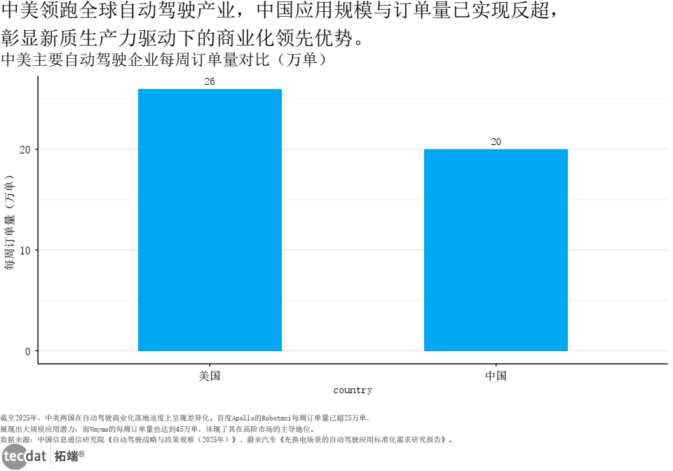 中国智能驾驶产业的强大,还体现在全球化布局上。中国信息通信研究院数据显示,中国Robotaxi每周订单量已超20万单,与美国的Waymo(45万单)形成“双引擎”格局。从产品出海到技术标准输出,中国正从“跟跑”转向“领跑”。