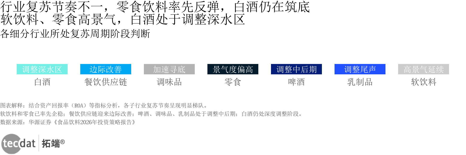 研判六:行业复苏节奏不一,软饮料、零食率先企稳,白酒仍处调整深水区。
