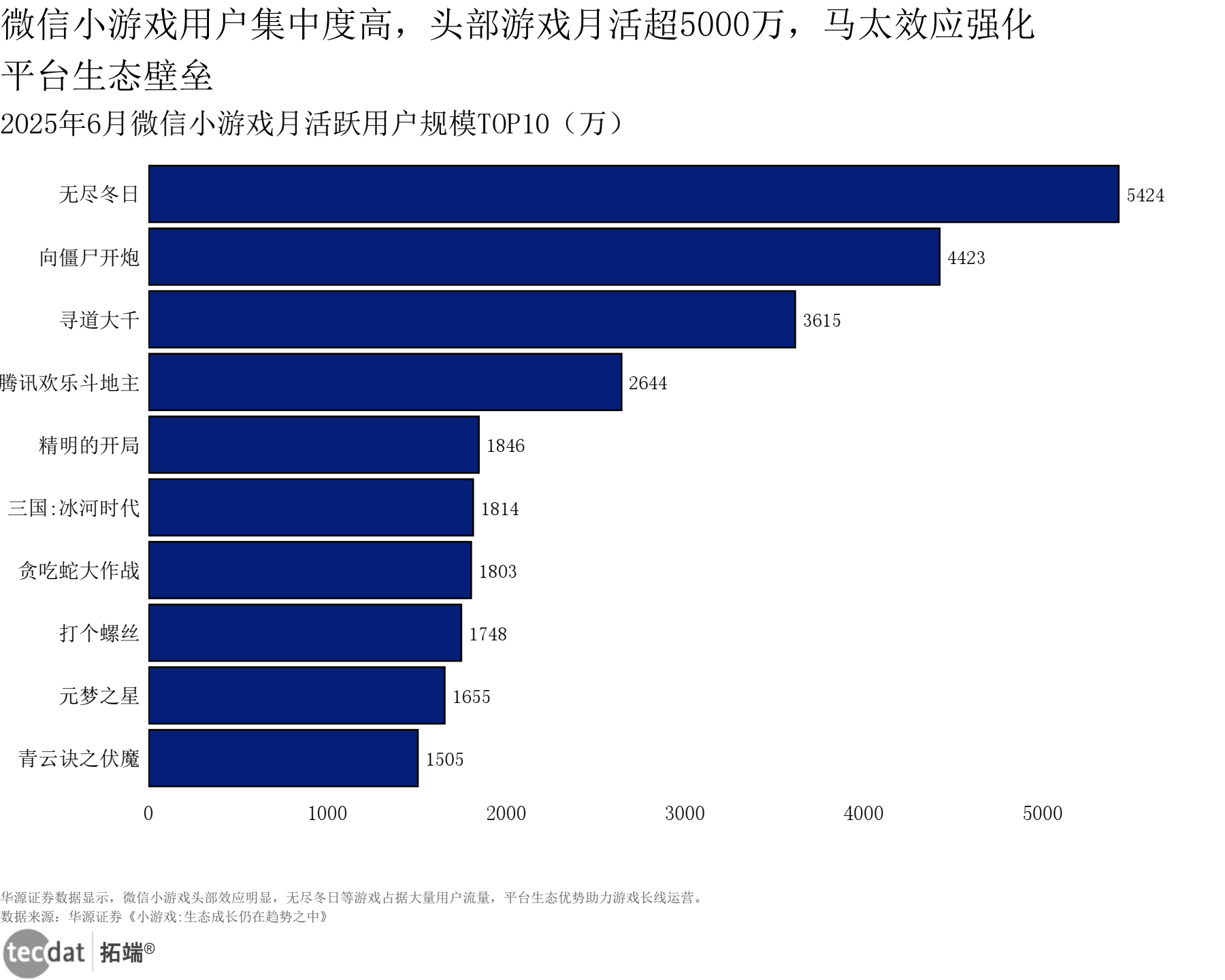| 2025年6月微信小游戏TOP1月活 | 5424万 | 华源证券《小游戏:生态成长仍在趋势之中》 |