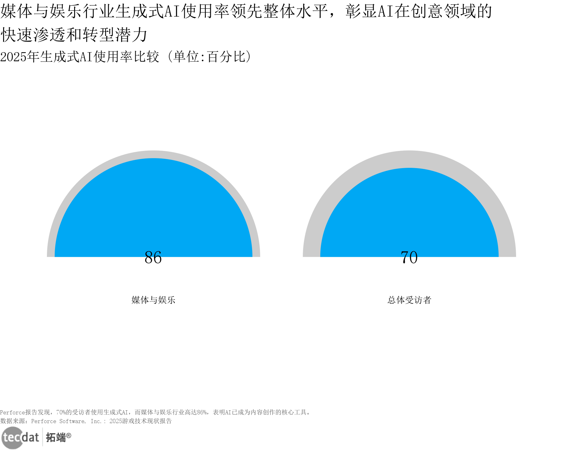 | 媒体与娱乐行业AI使用率 | 86% | Perforce《2025游戏技术现状报告》 |