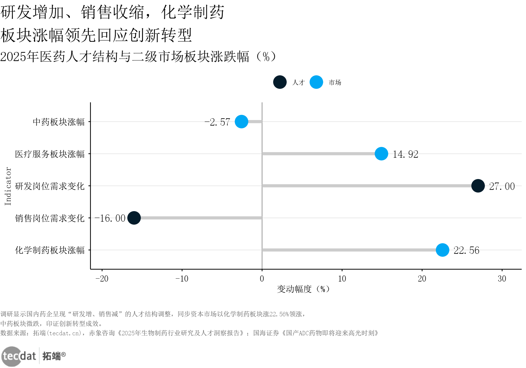 产业的转型,往往最先体现在人才市场和资本市场的冷热变化中。这份报告揭示了一个鲜明的“剪刀差”:药企对研发岗位的需求持续攀升(+27%),而对销售岗位的需求则在萎缩(-16%)(见图外资生物医药人才市场刻度线信息图5)。