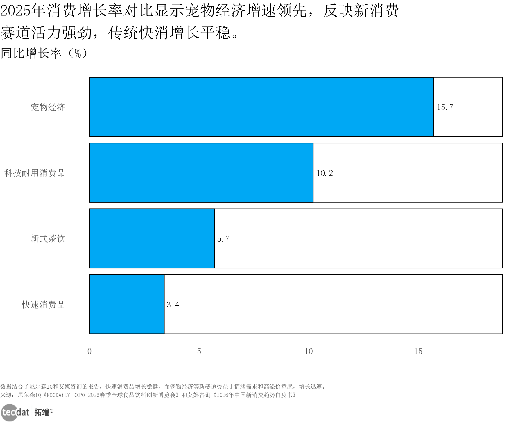 3秒解读:宠物经济成为新消费第一增长极,技术驱动型消费品增速亮眼,情绪消费需求凸显。对应人群行动建议:创业者可聚焦宠物经济细分场景(如宠物健康、智能用品);品牌运营者可加大新式茶饮的健康化、个性化研发投入。