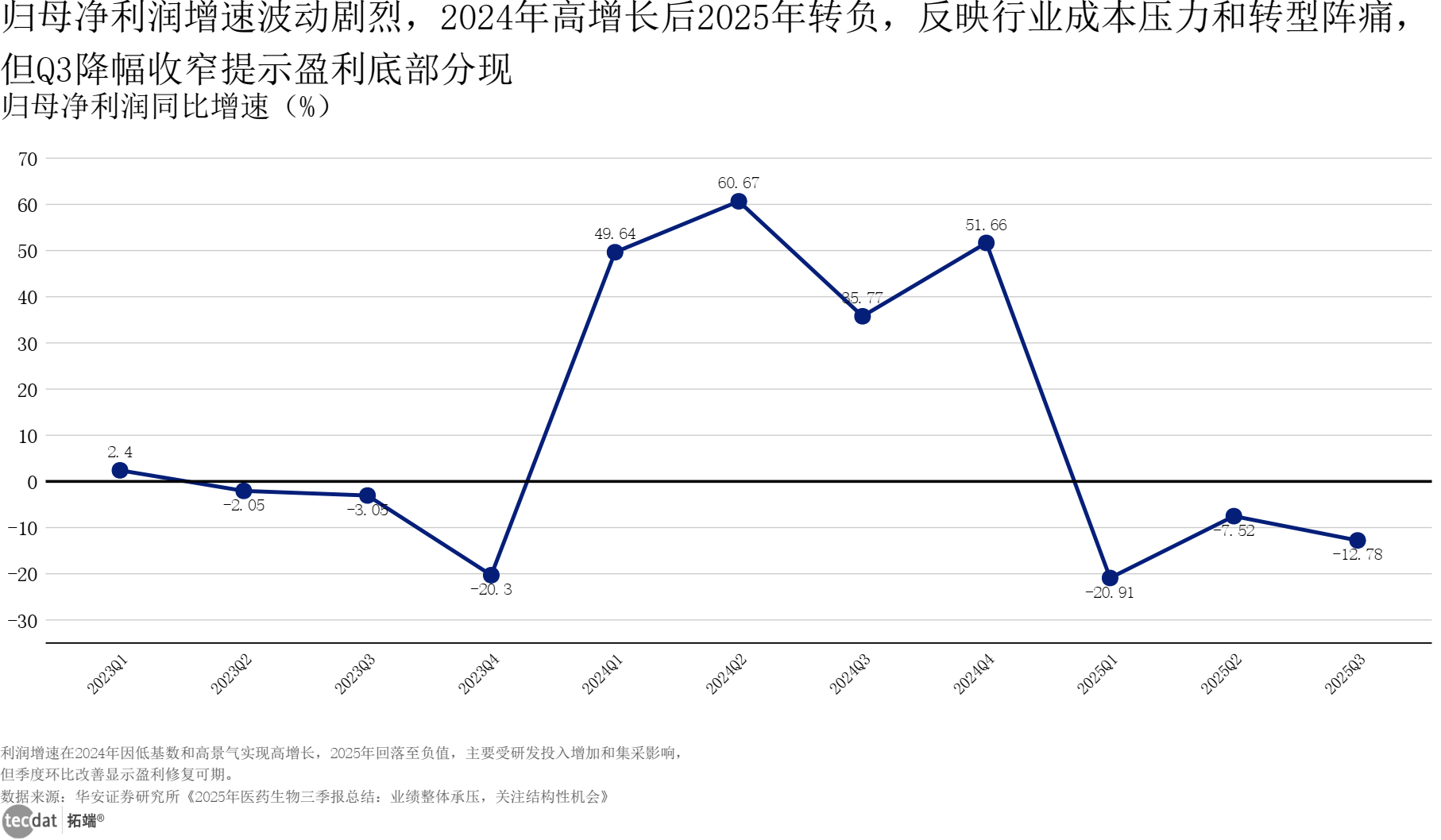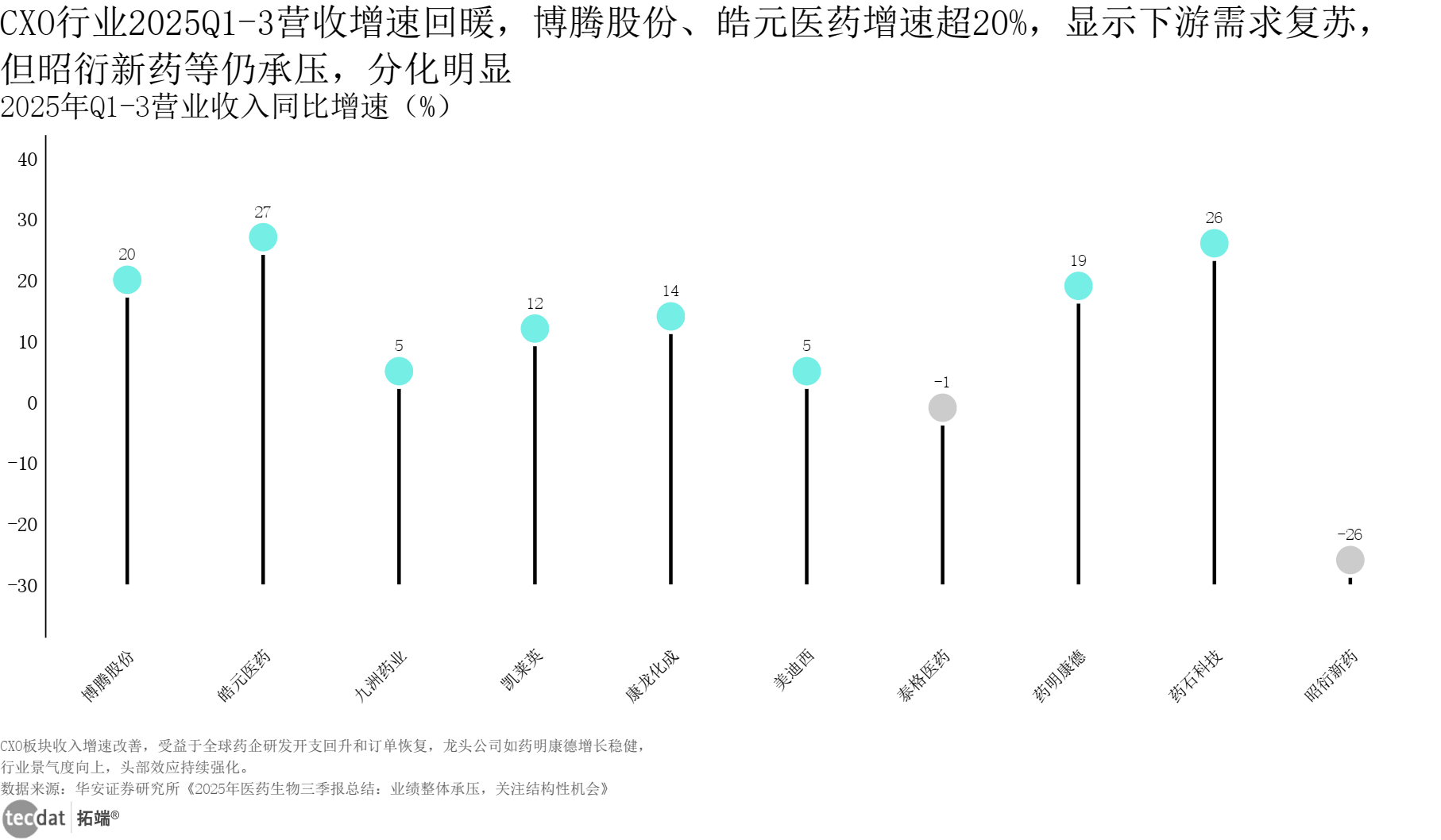 3秒解读:行业从2024年的负增长逐步修复,2025年三季度进入正增长区间,CXO和化学制剂是主要增长动力。