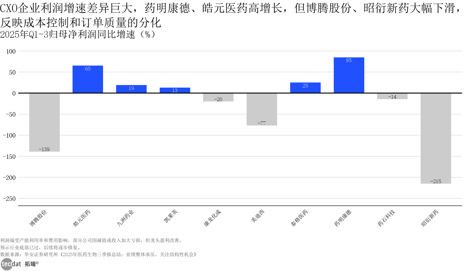 3秒解读:净利润增速修复滞后于收入,但CXO板块净利润增速远超行业平均,体现规模效应与订单复苏红利。