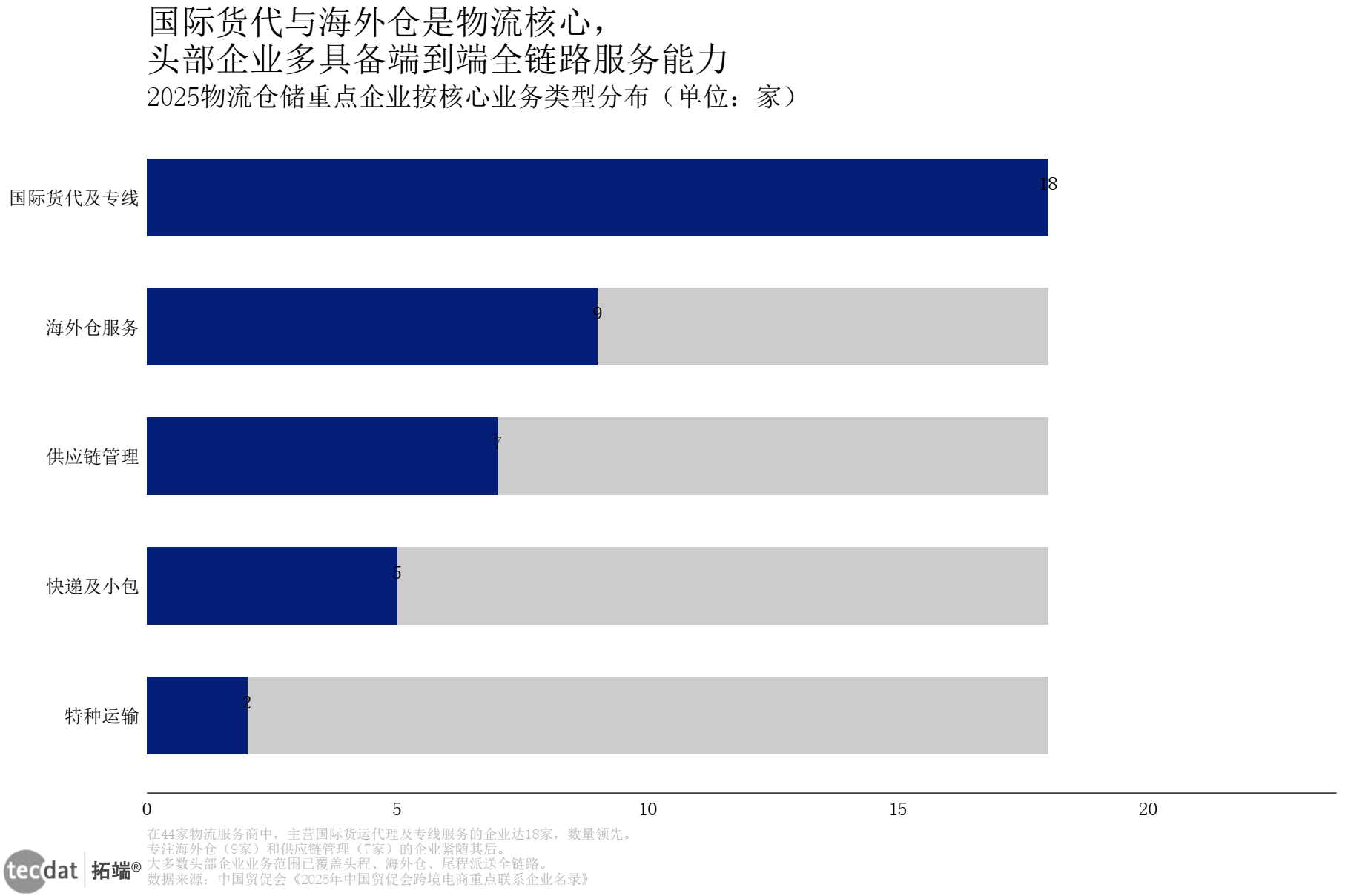| 跨境电商服务生态 | 物流仓储44家,数字化及增值19家,合计占比55.8% |