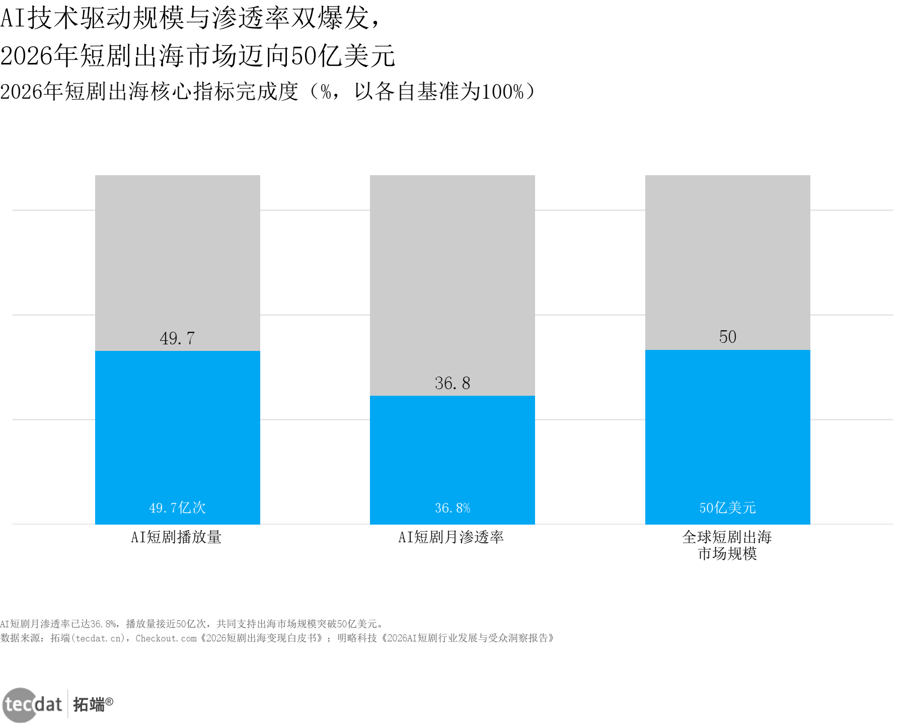 • 短剧出海市场规模与渗透率完成度对比灰底比例条形图表1