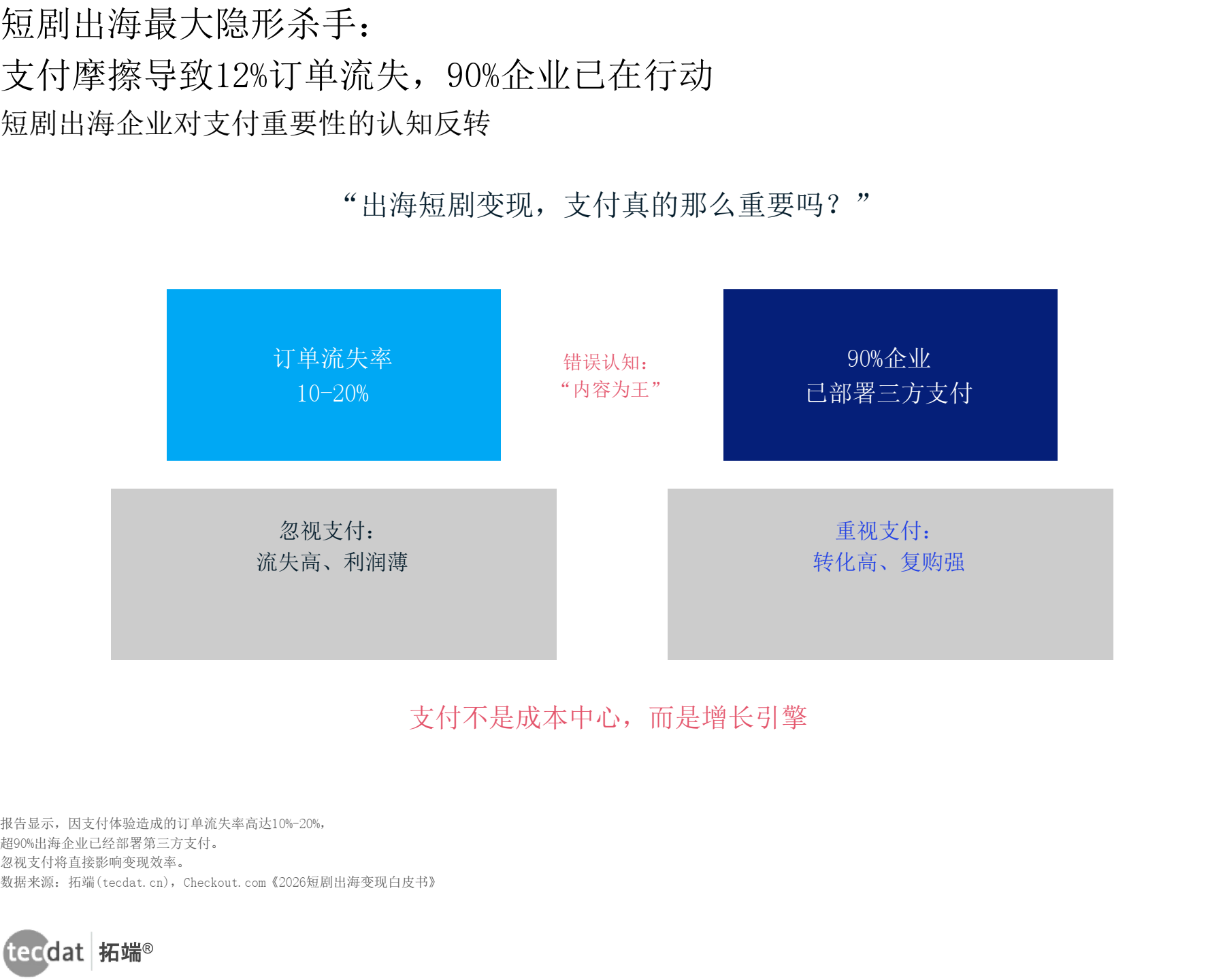 报告核心观点很明确:支付不是成本中心,而是增长引擎(见短剧出海变现认知反转型信息图2)。