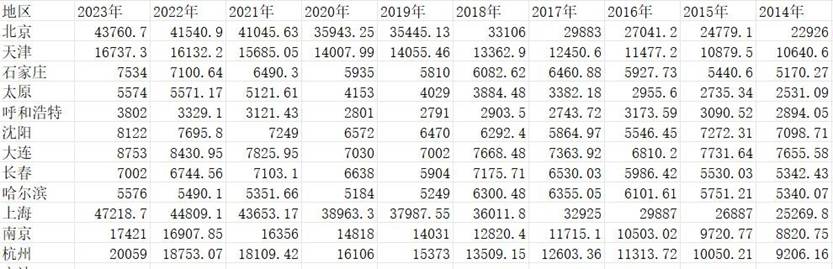 - 地区生产总值部分数据截图