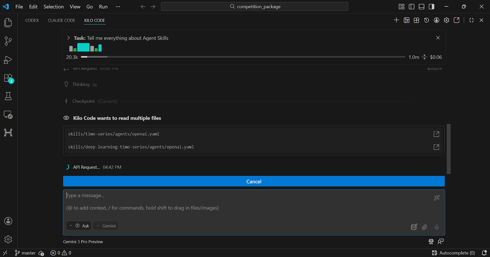 提交指令后,Gemini 3.1 Pro会生成结构化的技能定义,并提示我们进行本地安装。确认安装所有技能后,输入“/skills reload”重新加载技能,再输入“/skills list”验证技能是否添加成功。