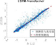 散点图也直观地反映了模型的预测精度。LSTM-Transformer模型的预测值分布更加集中,更靠近对角线,显示出良好的跟踪性能。