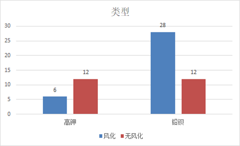 下图为类型与风化的关联柱形图,清晰呈现高钾玻璃未风化占比高、铅钡玻璃风化占比高的特征。