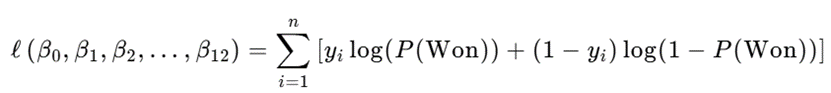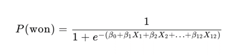 其中,P(won)为获奖概率,β₀-β₁₂为回归系数,X为特征变量,模型通过最大化似然函数求解最优系数: