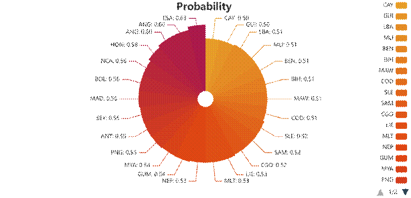 模型设定0.5为概率阈值,预测76个未获奖国家中有26个可能在2028年实现首奖突破,但所有国家的获奖概率均低于0.7,其中萨尔瓦多(ESA)的概率最高(0.63),反映出新兴国家实现奥运奖牌突破仍面临较大挑战。
