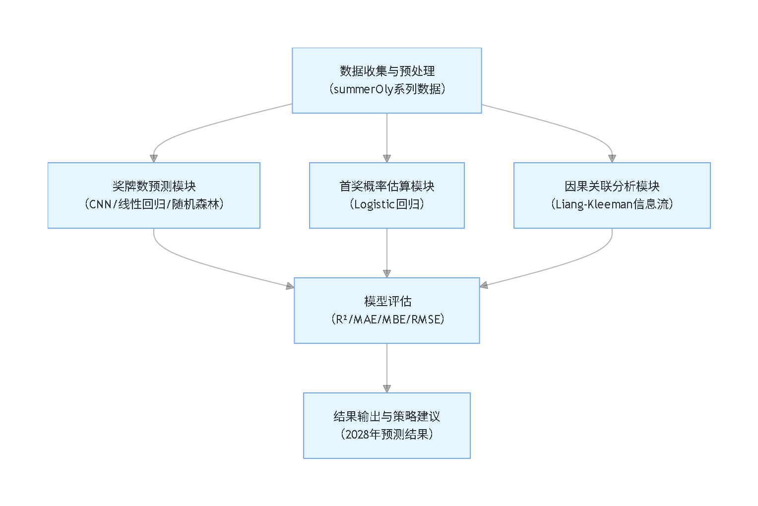 随着全球体育竞争的日趋激烈,传统依靠经验判断的奖牌预测方式已难以满足精准决策的需求,如何通过数据建模的方式量化各类影响因素、挖掘奖牌数背后的潜在规律,成为体育数据分析领域的核心研究方向。本文聚焦2028年洛杉矶夏季奥运会奖牌预测这一实际业务场景,整合多届奥运会的奖牌数、运动员人数、项目参与情况、东道主信息等核心数据,构建了多模型融合的分析框架——既实现了各国金牌数、总奖牌数的精准预测,也完成了未获奖国家首奖概率的估算,同时揭示了奥运项目设置与奖牌数量之间的深层因果关系。本文内容改编自过往客户咨询项目的技术沉淀并且已通过实际业务校验,该项目完整代码与数据已分享至交流社群。阅读原文进群,可与800+行业人士交流成长;还提供人工答疑,拆解核心原理、代码逻辑与业务适配思路,帮大家既懂 怎么做,也懂 为什么这么做;遇代码运行问题,更能享24小时调试支持。本研究的创新点在于突破了传统相关性分析的局限,采用Liang-Kleeman信息流方法量化项目设置对奖牌数的因果影响,同时结合CNN神经网络、Logistic回归、多元线性回归及随机森林模型,形成“数值预测-概率估算-因果挖掘”三位一体的分析体系。下文将从数据预处理、模型构建、结果分析三个维度展开,结合实操代码与可视化结果,让读者清晰掌握完整的分析流程与核心技术要点。