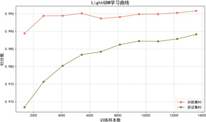 - LightGBM:采用直方图算法与GOSS采样优化效率,拟合与泛化平衡最优,训练集与验证集性能差异小,方差低;