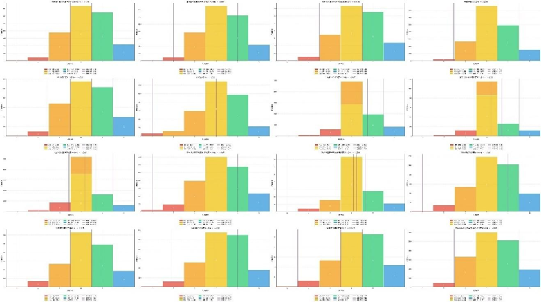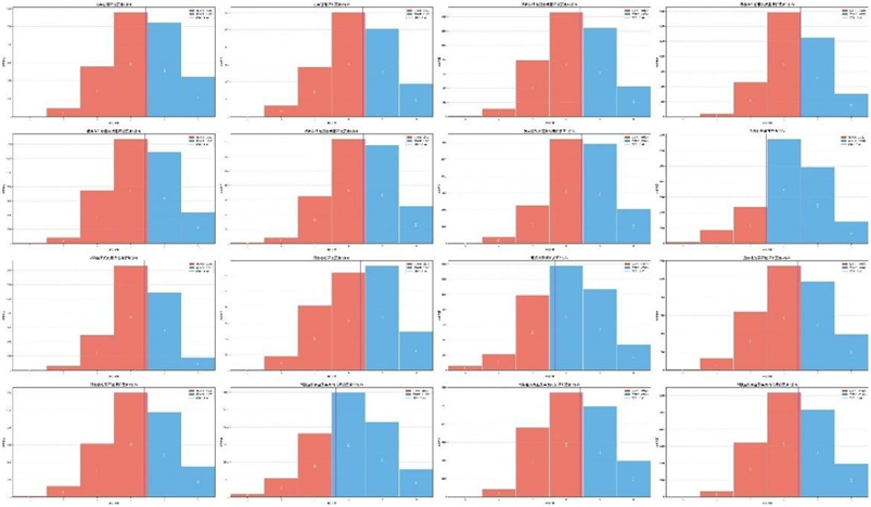 转换后各子维度的高—低分组频率分布(部分):