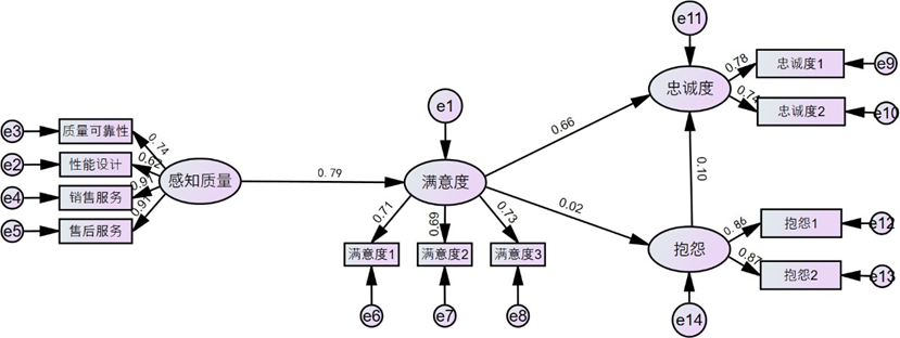 - 顾客抱怨对忠诚度的路径系数为0.088(CR=13.38,p<0.001),与假设4相反,呈显著正向影响。结合顾客恢复理论,当用户抱怨得到妥善处理时,会感受到品牌对其需求的重视,进而增强信任与忠诚,将负面体验转化为正向情感。