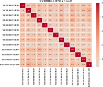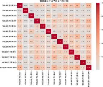 分析显示,各主因子下属子因子相关系数整体较低,相对独立,说明子因子设计具有良好的区分度;而总体评价指标间呈中高强度正相关,如音响娱乐与驾驶舱内饰相关系数达0.9,验证了用户对性能设计的整体感知一致性。