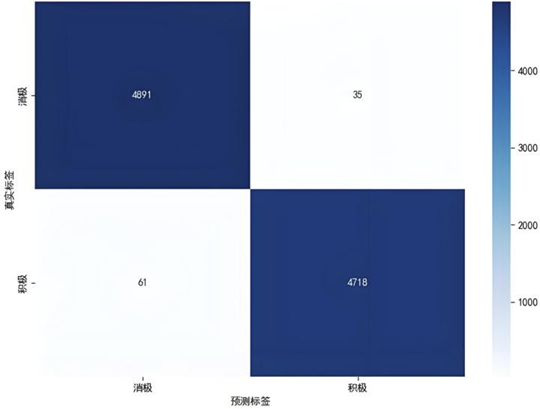 我们将"最满意""最不满意"评论文本分别标注为正、负情感样本,按8:2比例划分训练集与验证集,基于BERT-base-chinese模型微调3轮构建情感分析模型。模型评估结果显示,消极与积极类别的精确率、召回率及F1分数均达0.99,整体准确率0.99,宏平均与加权平均指标亦维持0.99的高水平,体现模型在正负类别识别中实现了精确性与覆盖性的卓越平衡。