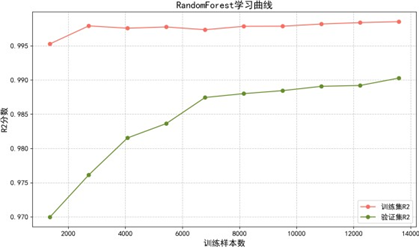 - 随机森林:通过Bagging集成与特征采样天然具备正则化效果,小样本时存在轻微欠拟合,数据量增加后泛化能力稳步提升,无显著过拟合;