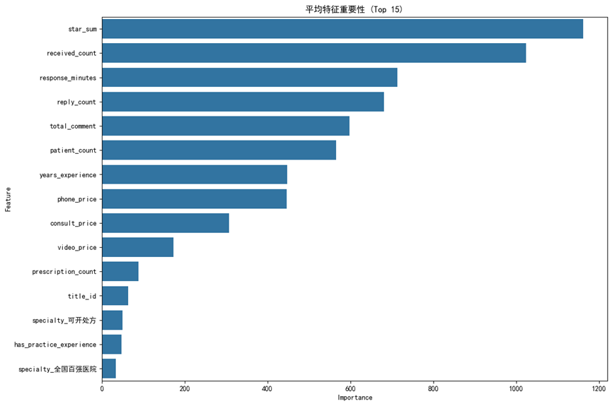 - 关键成功因素的量化识别: 综合运用探索性数据分析(EDA)与多种监督学习模型,量化分析影响医生服务定价、患者满意度及平台流量分配等关键结果变量的核心驱动因素,并评估其相对重要性。