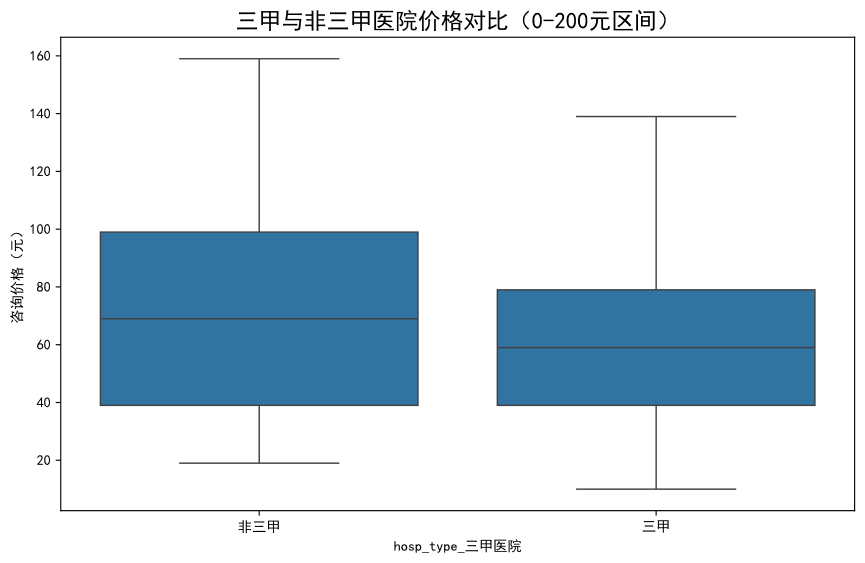 - 医院层级与品牌(hosp_rank_top10、hosp_type_三甲医院):顶尖医院品牌溢价显著,反映医疗服务的“稀缺性品牌资产”。