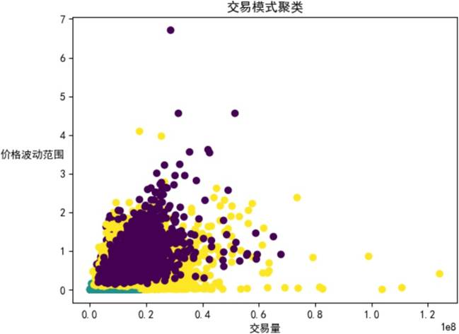 建模结论:将交易模式分为三类:低交易量/低价格波动类(集中在低交易量、低价格波动范围区域,反映交易不活跃且价格稳定的模式)、中等综合特征类(交易量与波动分布分散,反映多样化市场状态)、相对高波动/中等或偏高交易量类(分布在中等或较高价格波动范围及不同交易量区间,体现多样化的交易活跃程度与价格波动组合模式)。该模型为理解交易行为提供了有价值的视角,具体经济含义需结合更多市场背景信息分析。
