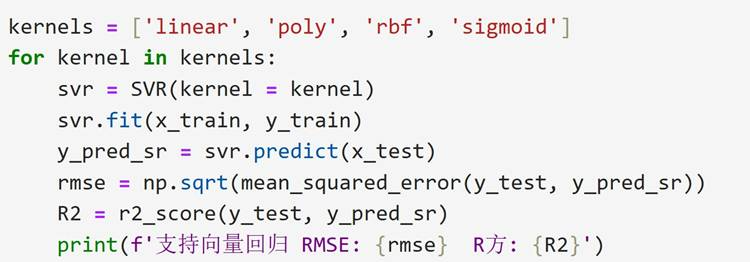 - 其他回归模型:LinearRegression(线性回归)、DecisionTreeRegressor(决策树回归)、KNeighborsRegressor(最近邻回归)、SVR(支持向量回归),用于多模型对比验证。