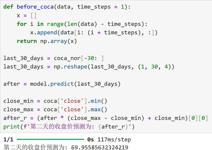 建模结论:训练过程中,验证集损失(val_loss)呈现波动变化,最终测试集均方根误差(RMSE)为0.0118,决定系数(R²)高达0.9909,表明模型对测试集数据的预测值与真实值高度契合,能精准捕捉价格序列的内在规律,具备出色的拟合能力与预测有效性,训练过程未出现明显过拟合或欠拟合问题。RMSE较小且R²趋近于1,反映模型预测误差极低、对数据的解释能力极强,可为投资者提供有参考价值的预测结果。但需明确,股票市场受宏观经济、政策导向、突发事件等多重复杂因素影响,该模型仅基于历史价格数据建模,实际应用中需融合更多元信息综合研判。