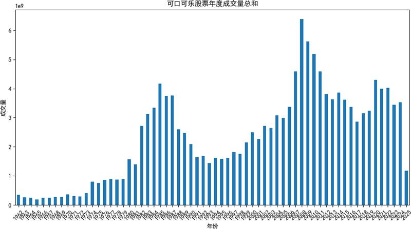 可视化目标:展示1962年至2025年可口可乐股票成交量的长期变化趋势。