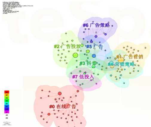 从关键词聚类图谱可见,在线广告与广告营销、投放策略等聚类的交叉性较弱,说明跨维度的系统性研究仍有空白。这些聚类内部一致性高,但交叉领域的探索不足,为本次研究提供了切入点。